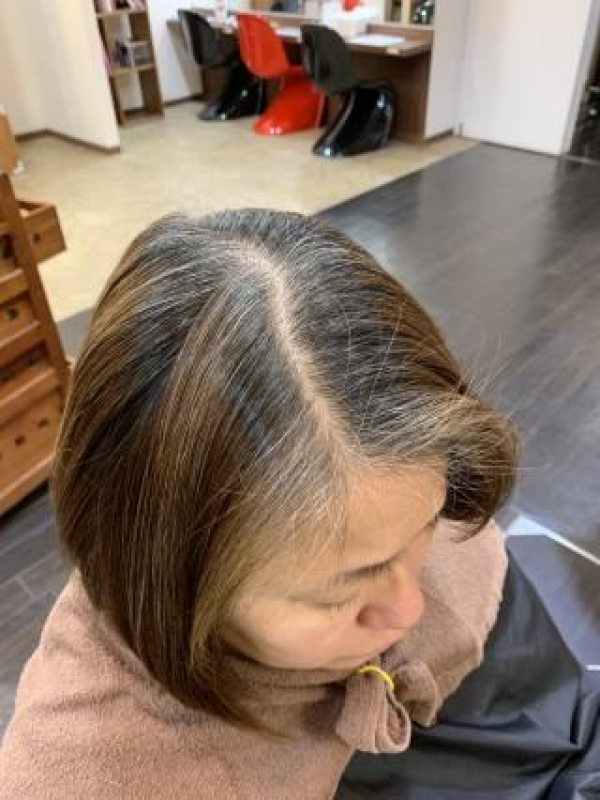 | スタイリング | 白髪の白と地毛の黒の中間のベージュをブレンドさせることで白髪の馴染みが良くなります。